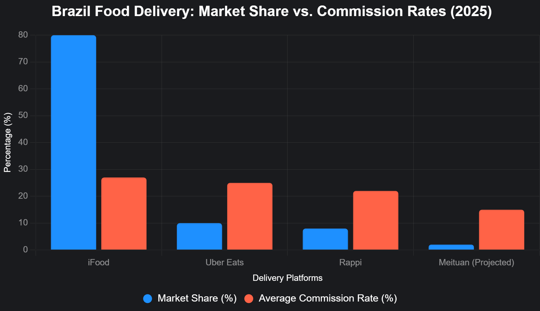 Brazil’s 214 million population, 85% smartphone penetration, and $157 billion trade relationship with China in 2024 make it a prime target for Meituan. The country’s food delivery market is growing rapidly, Yet iFood’s dominant 80% market share, paired with its steep 27% commission rates, is fueling growing frustration among businesses and consumers alike.