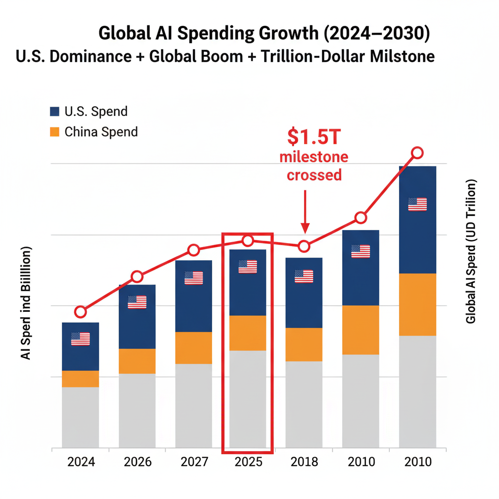 Global AI spending will hit $1.5T in 2025, but U.S. firms face geopolitical, regulatory, and supply-chain challenges that could impact efficiency and growth.
