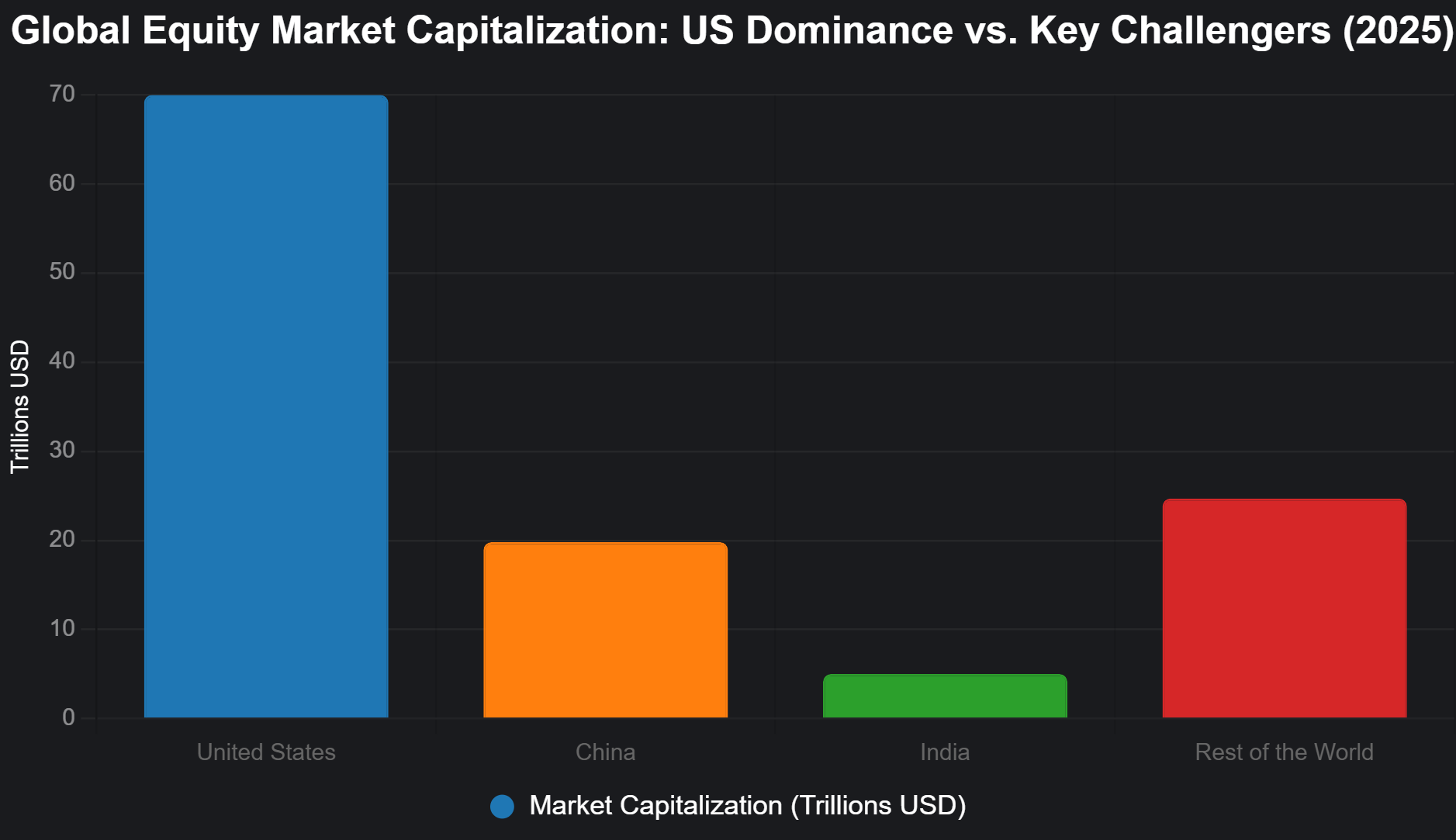 China leads this group with $19.8 trillion in market capitalization. Its strength lies in three primary sectors:
