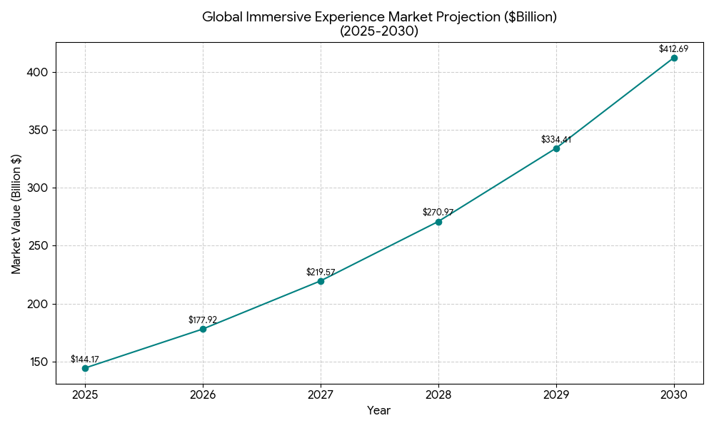 The global immersive experience market is projected to reach $144.17 billion by the end of 2025, growing at a compound annual growth rate (CAGR) of 23.41% through 2030.