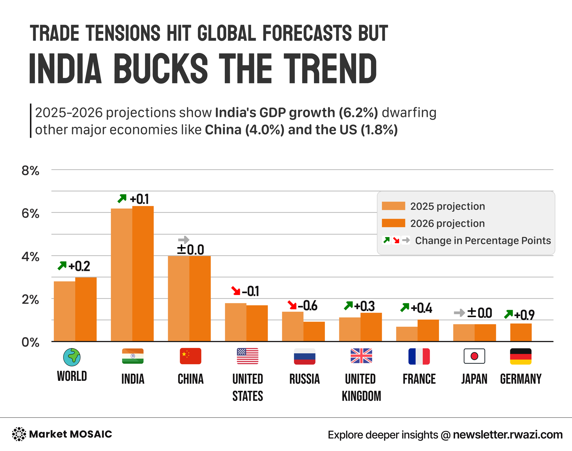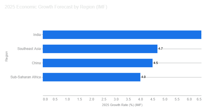 In Asia, resilience shows up: India is forecast to grow by 6.6% in 2025, the fastest among major economies. China’s growth is projected to moderate to roughly 4.2%, and ASEAN economies to hover near 4.3%.